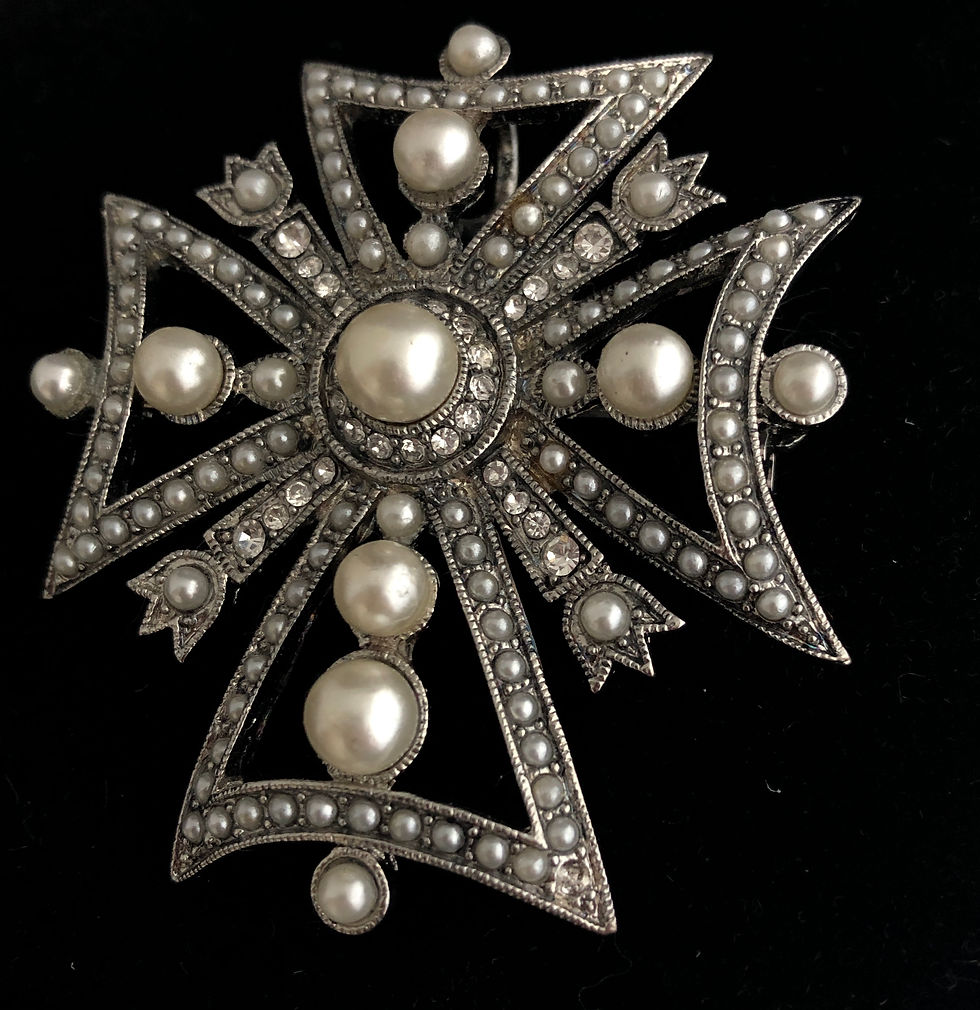 White and pink Freshwater Cultured pearl brooch in sterling silver